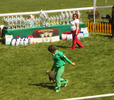 Na zajęciach z handlingu Chrupek zachowywał się bardzo fajnie. Grzecznie stał i ładnie chodził, również z innymi obozowiczami podczas wymian psami. Podczas zawodów obozowych w konkurencji wystawa zajęliśmy lokatę 5/12, co uważam za dobry wynik przy takiej konkurencji.